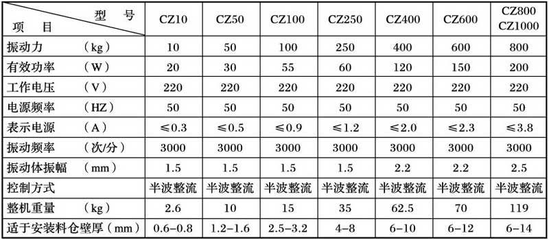 振動器無振動 | 1、電控箱無電流輸出。 2、聯(lián)接線斷路。 3、線圈損壞。 | 1、檢查電控箱及電源。 2、檢查聯(lián)接各接點(diǎn)是否斷開。 3、更換線圈。 |