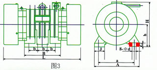 型號 | 激振力 KN | 額定功率 KW | 額定電流 A | 振動次數(shù) 次/分 | 安裝型式 | L | B | b | A | a | h | H | G | J | d | 圖 |
